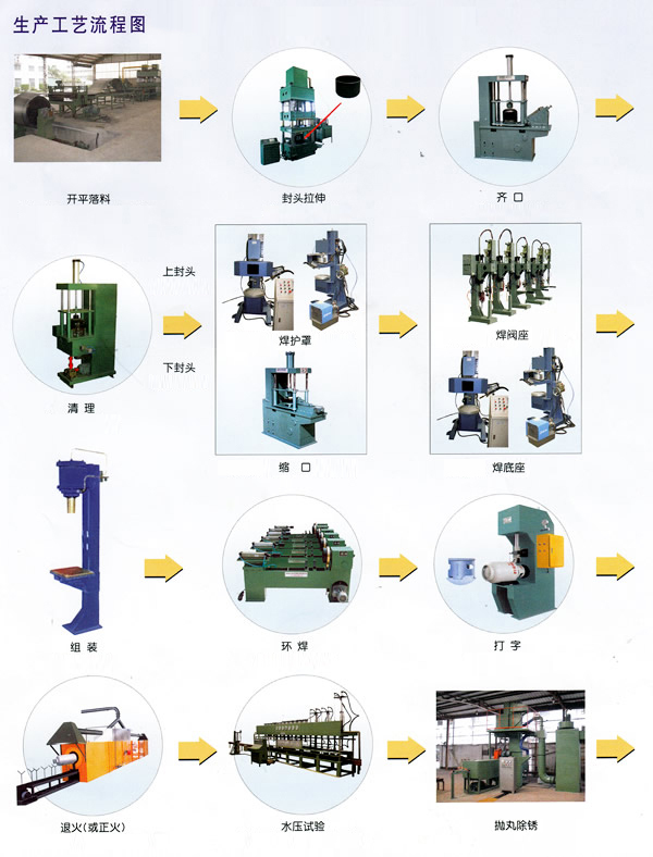 創(chuàng)辦于83年的泰州市羚驊機(jī)械有限公司是國內(nèi)設(shè)計生產(chǎn)液化石油氣鋼瓶成套生產(chǎn)設(shè)備的企業(yè)。產(chǎn)品包括:開平落料線、封頭拉伸成型機(jī)、齊口機(jī)、縮口機(jī)、清理去毛剌機(jī)、沖孔機(jī)、焊瓶嘴機(jī)、焊護(hù)罩機(jī)、焊底座機(jī)、投瓶…